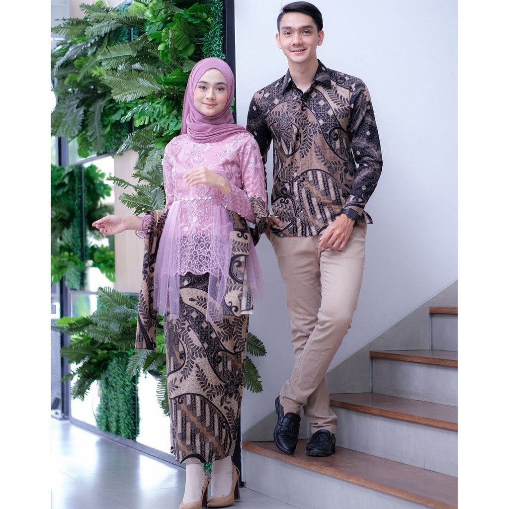 Nobrand couple kebaya modern baju wisuda tunangan lamaran terbaru batik brukat pasangan pekalongan.